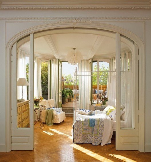 Фотография: Спальня в стиле Прованс и Кантри, Интерьер комнат, Терраса, Текстиль, Большие окна – фото на InMyRoom.ru