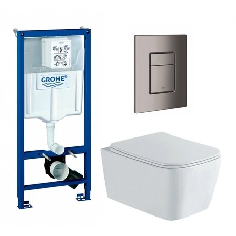 Ищете готовое решение для ванной без головной боли с подбором компонентов? Комплект Grohe включает инсталляцию, унитаз и кнопку смыва — устанавливается за один визит мастера. Экономите время на поиске совместимых деталей и получаете 5 лет гарантии на всю систему. Три главных преимущества: - Безободковая чаша — смывает всю поверхность без застоя воды в ободке, чистить на 40% быстрее обычного унитаза - Сиденье с микролифтом — опускается бесшумно, не нужно придерживать рукой, защищает от сколов - Пневматическая кнопка — работает от давления воздуха, не требует электричества и не ломается от влаги Подходит для ванных комнат от 2,5 м². Инсталляция монтируется в капитальную стену или фальшстену из гипсокартона — глубина ниши всего 23 см. Универсальное решение для квартир, загородных домов и коммерческих помещений с высокой проходимостью. Размеры комплекта: инсталляция 113×50×49,5 см, чаша высотой 26 см (стандарт для взрослых). Расстояние между крепежными шпильками 18 см — совместимо с большинством настенных моделей. Технические характеристики: - Горизонтальный выпуск — для стандартной разводки в российских квартирах - Фарфоровая чаша — не впитывает запахи и сохраняет белизну без желтизны - Сиденье из дюропласта — устойчиво к бытовой химии и не царапается губкой - Серая кнопка из пластика — сочетается с современной плиткой и хромированными смесителями - Подвод воды сбоку или сзади — адаптируется под существующую разводку без переделки стояка Вес комплекта 43 кг — поставляется в собранном виде, не требует дополнительной комплектации. Производство Grohe, Германия.Отзывы